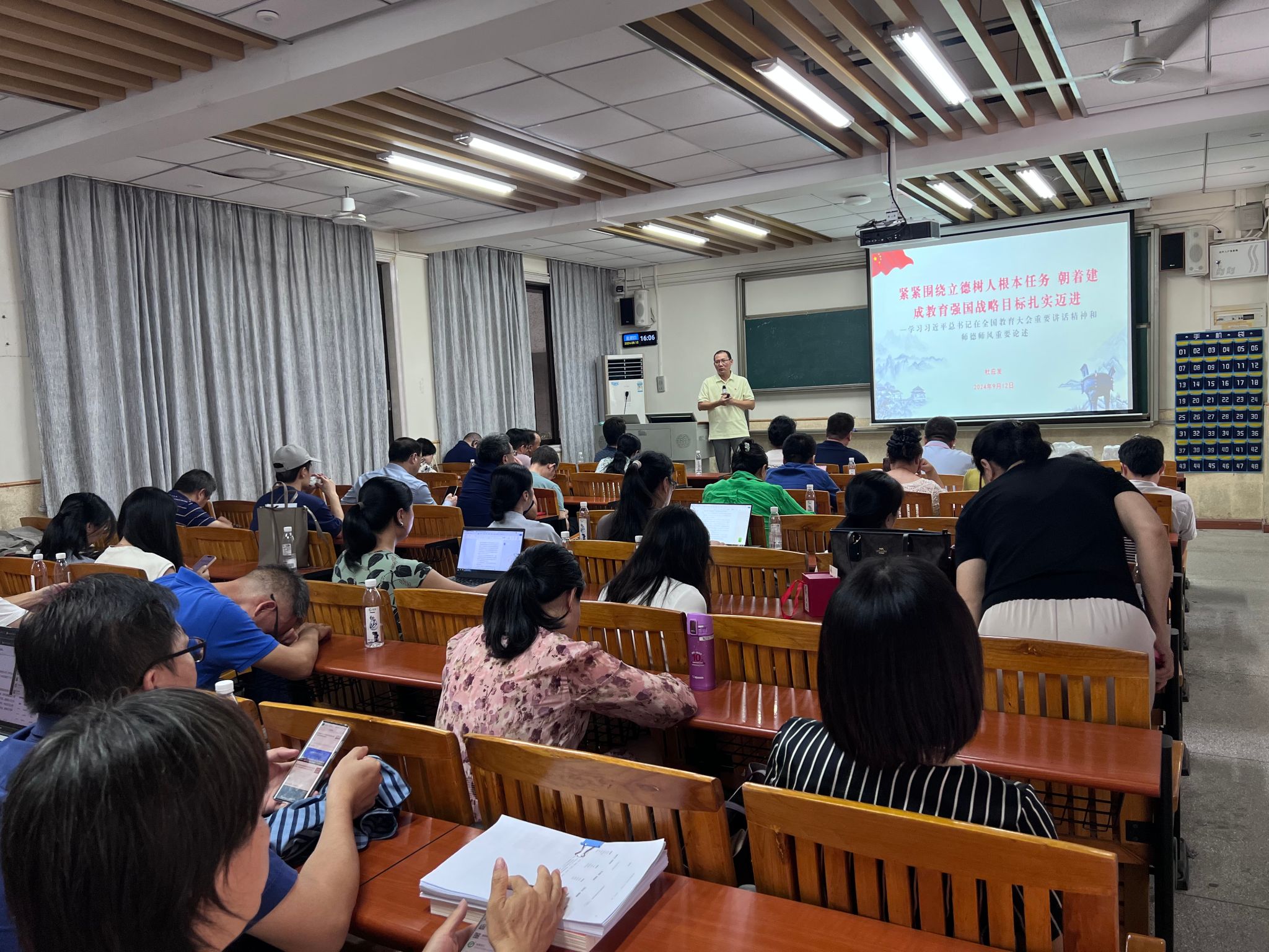会上,杜应发还组织大家学习了习近平总书记关于师德师风的重要论述,传达学习了中央纪委提醒公职人员不得参加的20种饭局,并结合近期国内出现的师德师风问题开展了师德师风警示教育。