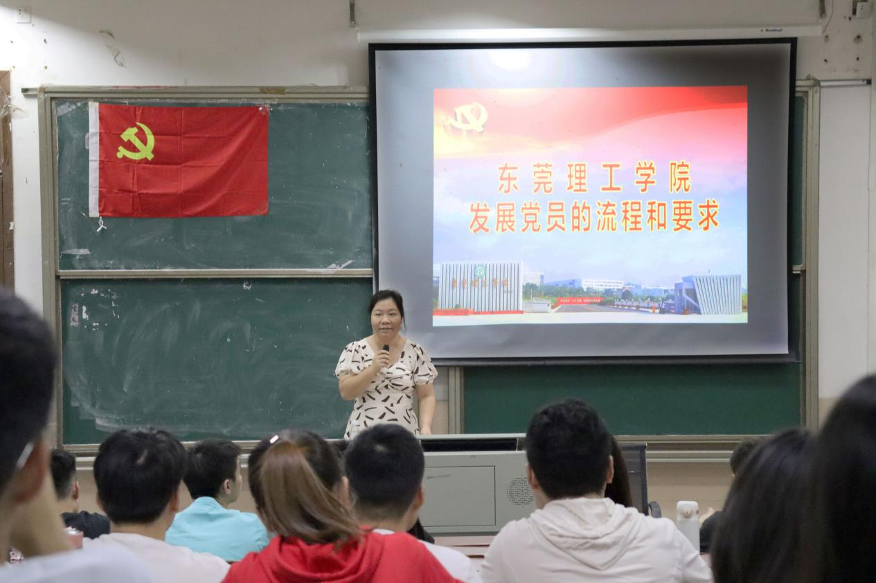 分党校第三十三期入党培训班第三次党课于莞城校区的模拟法庭6#1开讲,法社学院学生第一党支部书记钟丽华应邀主讲主题为“发展党员的流程和要求”的党课,全体33期入党积极分子到堂听讲。