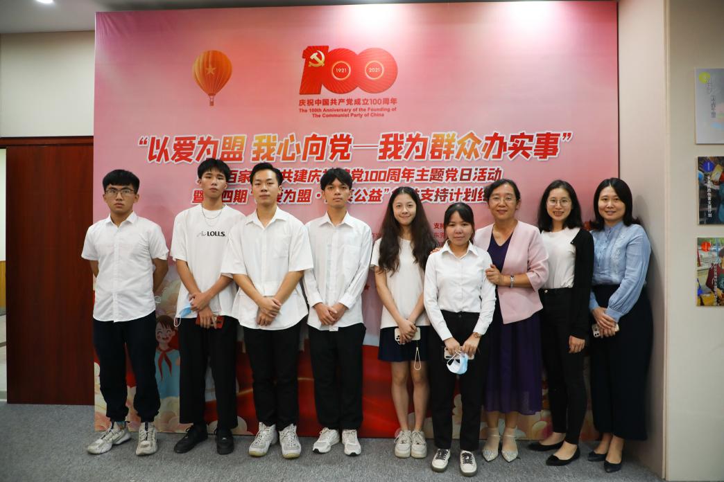 为有效促进专业课程与实践课程(项目化课程)的深度融合,探索新文科背景下法社学院实践育人体系,推进学院“三全育人”综合改革试点工作,7月12日学院副院长朱晓红、党曦博士、张子庄老师和6名大创项目学生团队在东莞市莞香花青少年服务中心参加了由东莞市民政局、东莞南城街道“两新”组织党委指导,东莞市社会工作协会、东莞市微笑爱心慈善基金会及盟大集团联合主办的“以爱为盟 我心向党——我为群众办实事”主题党日活动暨第四期“以爱为盟·微笑公益”创益支持计划终评活动。
