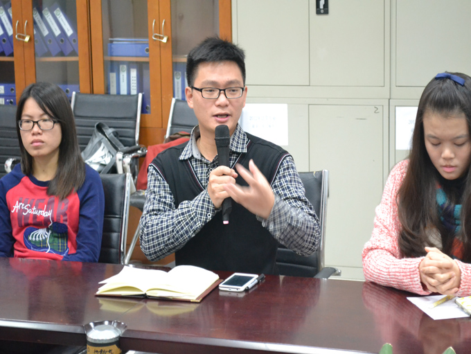早上9:40分,全体人员集合于经管楼211,全体会议开始。会议上,在观看电子相册环节中,大家一起回顾本学期的点滴,并被有趣的电子相册内容惹得捧腹大笑。在发言环节中,学生们分享工作与生活经历,总结发言展现了党建办在本学期的成长。另外,邱老师就学生们的发言情况发表了个人对于党建办现状的讲话,并结合经历引导学生们如何做事、做人,大家都认真倾听并有所思考与领悟。会议在11:30分结束,本次会议气氛融洽,大家都能从中有所收获。