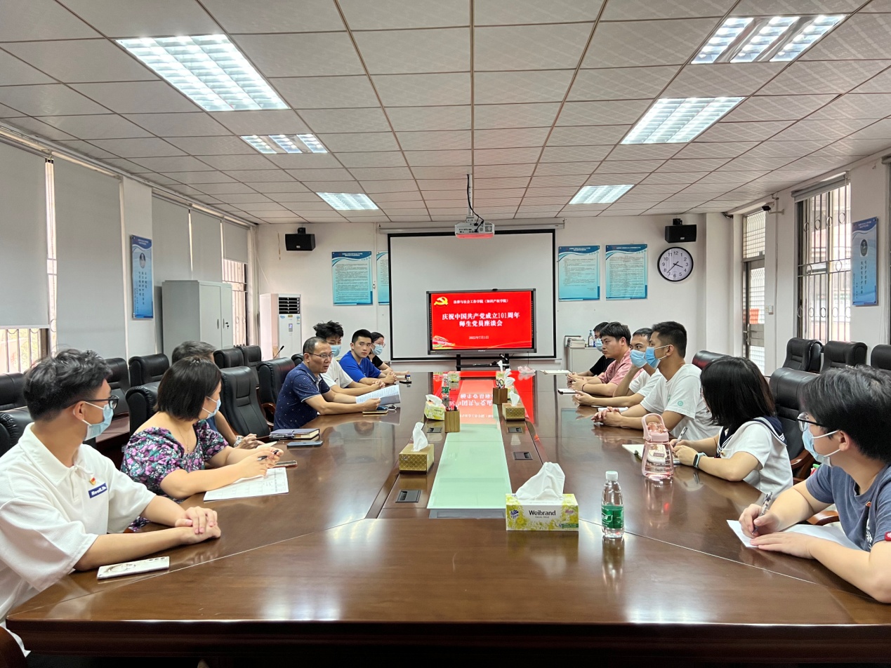 7月1日,法社学院召开师生党员座谈会,共同庆祝中国共产党成立101周年和香港回归祖国25周年。学院领导杜应发、丘永辉及部分师生党员等参加了会议。会议由学院党委书记杜应发主持。