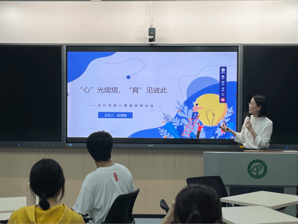 心理辅导负责人谢媚媚老师在莞城校区1202教室开展秋季学期心理委员工作培训,肉蒲团
