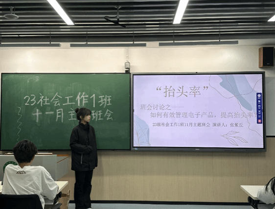 本周,法社学院各班级积极开展“怠机行动,回归专注”学风建设主题班会,旨在提高学生的课堂抬头率和学习专注度。此次活动倡导让学生们认识到电子产品在课堂中的无度使用对学习的不利影响,并让学生们回归专注的学习模式。