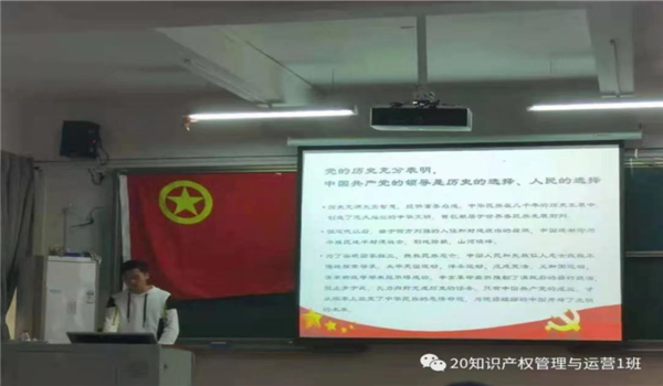 2020级知识产权管理与运营(专插本)1班班长刘泳君则带领该班同学了解新中国史的重大事件、重要会议、重要文件、重要人物,了解中国共产党领导人民进行艰苦卓绝的斗争历程。这些主题班会都有利于增强同学们对党的感情认同、理论认同、政治认同。对继承和发扬光荣革命传统、党的优良作风,对提高同学们的认识能力和处理实际问题的能力都有一定帮助。