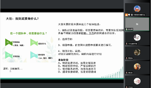 随后,朱晓红老师向我们分享大创项目的关键时间节点。知晓大创项目的各个关键时间节点可以帮助同学们有效规划自己完善项目的时间,做出合适的计划。2021年的大创项目伴随着7月暑假的到来正式展开。在接下来的一年半里,我们将不断地完善充实我们的项目,接受老师、学校对我们的考验。相信在大学的时光里,大创训练项目会成为同学们难忘的回忆。