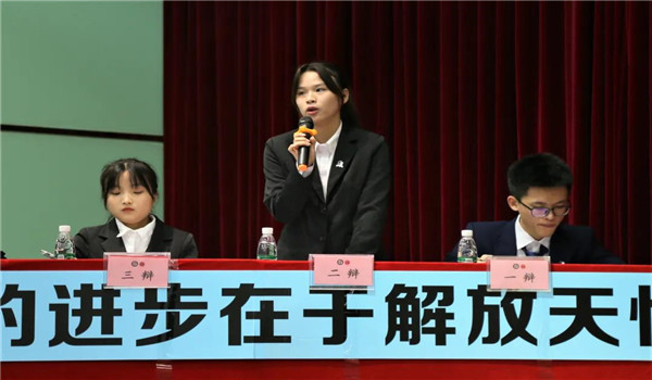 本次表演赛的辩题为“文明的进步在于解放天性/约束欲望”,正方法社学院辩论队与反方电智学院辩论队为新生奉上了精彩激烈、酣畅淋漓的辩论盛宴。首先是主持人宣读比赛赛制,介绍本次辩论赛的参赛辩手。随后,比赛正式开始。