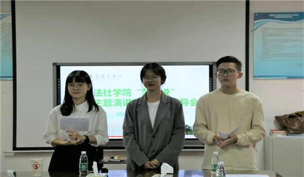 本次参赛的选手都来自2021级法学卓越班,会议伊始,三名参赛选手先后上台演讲自己准备的比赛内容。
