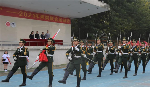 与经济管理学院在莞城校区运动场联合举办运动会。上午九点,阳光明媚,风和日丽,两院方阵、国旗护卫队入场。在庄严肃穆的升旗仪式后,法社学院党委副书记丘永辉宣布运动会正式开始。