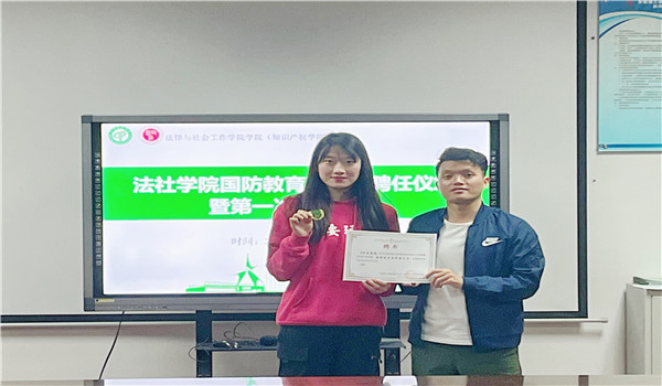 在聘任仪式上,邹欢老师讲解了国防教育和参军入伍动员宣讲的主要工作内容,对宣讲团成员的工作提出了三点要求,一是提高政治认识,把国防教育宣讲作为普及全民国防知识的契机,让更多的同学了解国防知识;二是“吃透”相关政策,把大学生参军入伍等政策理解透彻,在宣讲过程中做到政策“了然于胸”;三是创新宣讲形式,用学生喜闻乐见的形式做好国防教育和大学生参军入伍动员宣讲,激发同学们参军报国的热情。