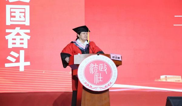在学位授予仪式开始前,院长郑玉敏做了简单的致辞,郑玉敏老师讲到,同学们在法社学习生活了四年,学到了专业知识,更重要的是学会如何做人。离别在即,祝愿同学们都能收获美好的人生,希望毕业生们日后常回学校看看。