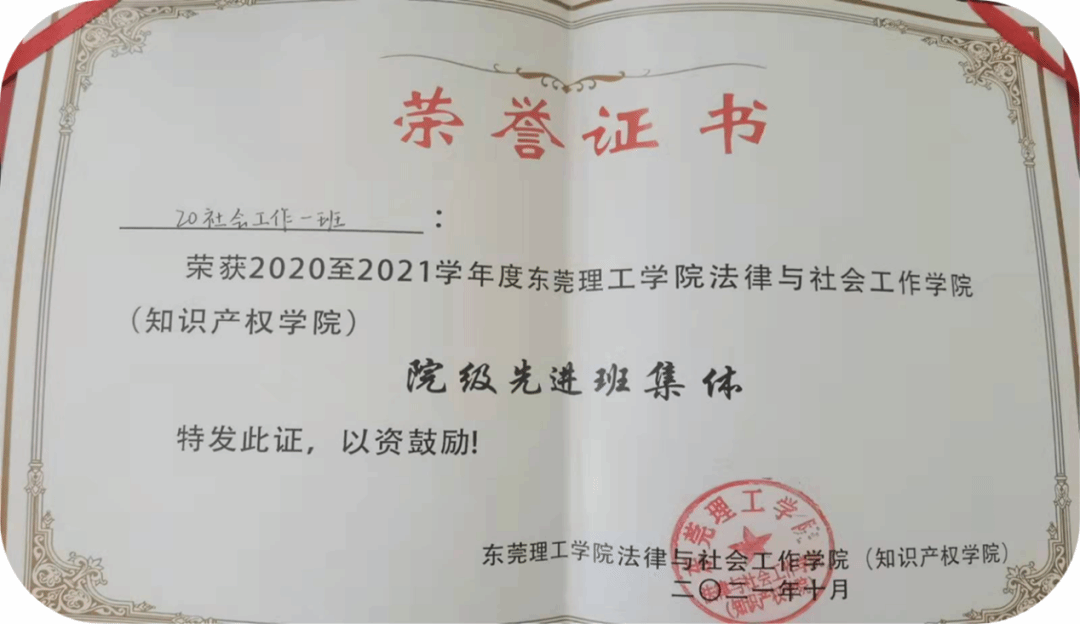 2020社会工作1班是一个团结友爱,互助同心的大家庭。从军训时的相遇到学习生活中的相识相知再到文体竞赛中的相互鼓励,我们畅想大学梦想,共同成长。在班主任黄俊辉老师的悉心教导和团组织的有力引领下,还获得了2020-2021学年度肉蒲团