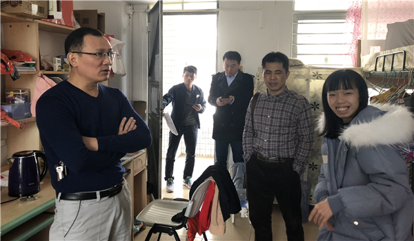 1月20日上午,肉蒲团 党总支书记杜应发、副书记丘永辉带领学工办全体辅导员,随机走访了寒假留宿同学的宿舍,了解留宿同学期末的实习和工作情况。 走访伊始,杜书记详细的询问同学们留宿的情况,了解到同学们大部分是因为实习、参加寒假社会调研等原因,其中还有一部分同学是因为购票时间比较晚,需要留宿一段时间。在走访的过程中,杜书记跟留宿的同学亲切交谈,聊生活、聊学习,同时也对留宿的同学提出了几点要求:一是要及时向家人和老师说明自己回家的时间,避免引起家人不必要的担心;二是在留宿期间要注意人身安全和财产安全,注意宿舍的防火防盗;三是要严格遵守学校关于留宿的相关规定。有什么特殊情况要及时向社区服务中心和辅导员报备。丘永辉副书记在交谈的过程中也再次向同学们叮嘱,要特别注意人身财产安全,最后离校的同学要锁好门窗等生活细节。 走访最后,全体老师为同学们送上了新春祝福,希望同学们能够开开心心的度过假期,并利用假期好好调整自己状态,迎接新的一年。
