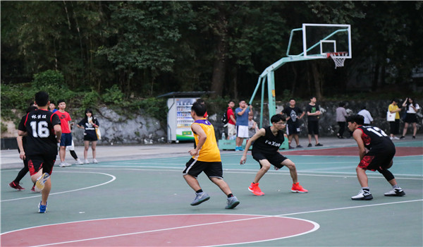 的第三届友谊杯篮球赛半决赛在图书馆前的篮球场举行,两支参赛队伍分别来自17级社会工作专业和16级法学专业。