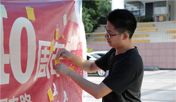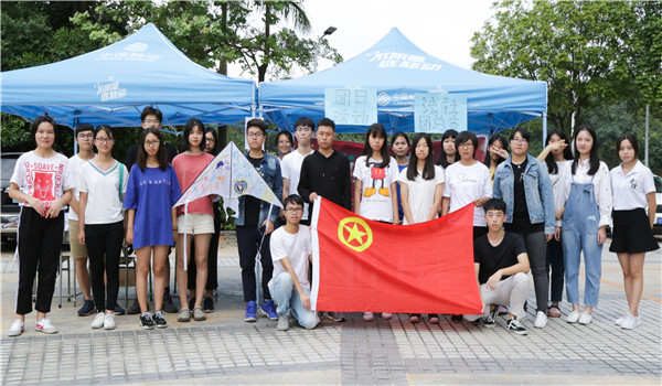 团总支在莞城校区图书馆前的空地举行了以“改革开放四十年,青春奋进正当时”为主题的摆摊团日活动。