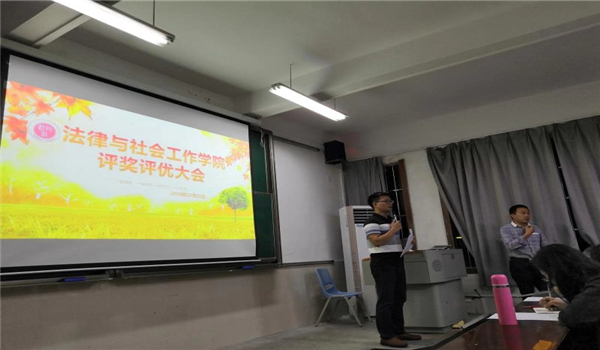 在6211课室召开2017-2018学年度评奖评优动员大会。辅导员邱可荣老师、刘海波老师和各班班长、团支书参与了本次会议。