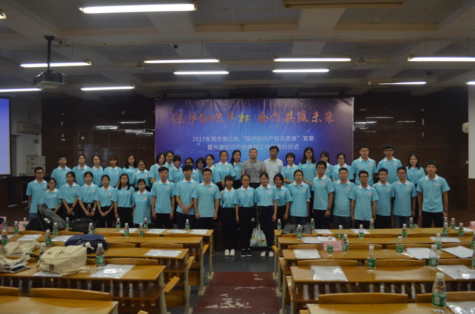 10月26日,由东莞市知识产权局主办、法社学院具体承办的2017年东莞市第三批“保护知识产权志愿者宣誓”暨共建维权工作网签约仪式活动在我校松山湖校区模拟法庭成功举办。