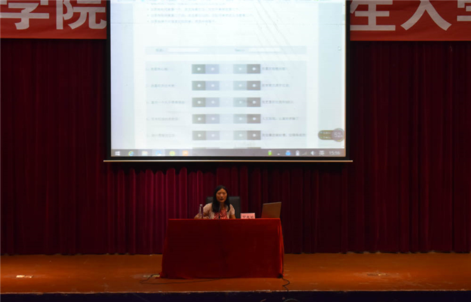 新生职业生涯规划与发展课程讲座在莞城校区学术报告厅召开。主讲人是罗兆靖老师,法社学院全体新生参加会议。
