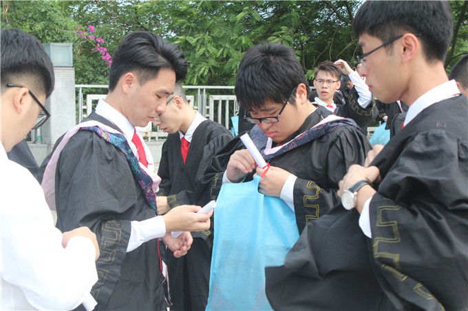 松山湖校区正门参加毕业照拍摄活动。