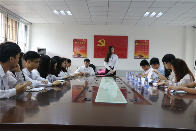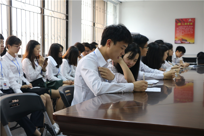 学生会良好的精神面貌,全体学生会委员身着正装,提前进入教室等候。待考察团到达,学生会副主席叶靖淇带领考察团评委参观学生会物资室。与此同时,其他考察团成员开始抽查出席人员,就学校及学校学生组织概况进行笔试知识考核。