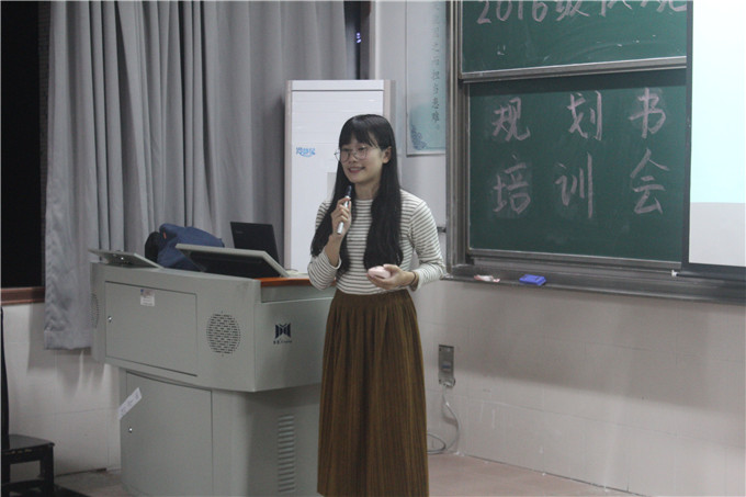 林永瑶讲师首先提出职业规划书是什么、有什么、怎么做三大方面的概念,而后详细讲解了参赛的职业规划书所需要的内容、特点。随后林永瑶讲师向在座的各位讲解了职规赛的流程,还介绍了几种职规书的排版技巧如善用图表、数据说明,字体规范,帮助同学们做好赛前规划。