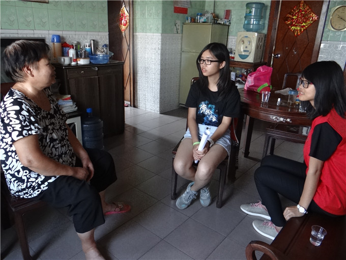 随后,在社工的带领下,志愿者们分成九个小组,分别去到不同的家庭。各组携带事前准备好的一份礼物,希望以此表达真诚并消除陌生感。在交流的过程中,有些家庭热情健谈,小孩天真无邪;部分家庭诉说生活的艰辛,眼含泪光。但是志愿者们尽自己的努力,给这些家庭带来阳光,让他们忘却烦恼,很快与他们融为一个集体。因为我们抱着同样的心,所以我们走在同一方向。仅通过简短的交谈,彼此间已形成较为深厚的情谊,让心连成一线。各个家庭虽承受生活的压力,却仍以坚强乐观的态度积极面对,给志愿者们上了一堂意义深远的课堂。