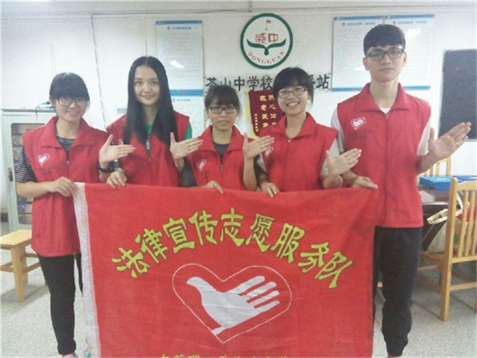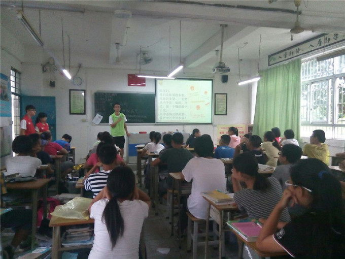 政法学院法律宣传志愿服务队在夏日炎炎之下迎来了本学期最后一次普法活动。本次活动主要是协助茶山社工到茶山中学进行普法活动。