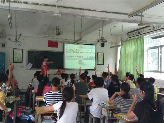 这次普法活动的主要是以上课的形式开展。在法制课堂中,以真实的案例引领同学,同时同学们认真听讲、积极举手回答问题。并且,本次的法制课堂主要从三个方面展开。第一是为同学们讲授了相关《预防未成年人犯罪法》的内容,增强同学们的防范意识。第二是为同学们讲述了“校园暴力”问题,这也是法律宣传志愿服务队本次普法的主要内容。众所周知,现校园中存在着大量校园暴力这类问题,通过向同学们讲述校园暴力的危害性以及如何拒绝校园暴力这类行为,增强同学们的法制意识。第三是讲述了《妇女权益保障法》的相关内容,特别是校园内的女生该如 何运用合法的途径保护自己合法的权益。