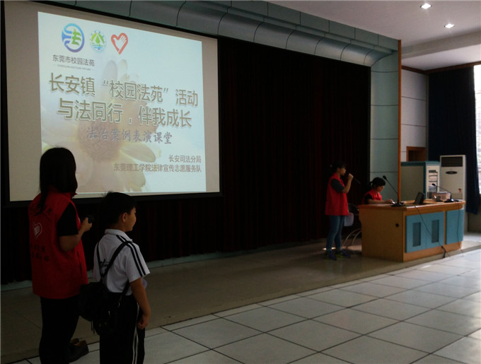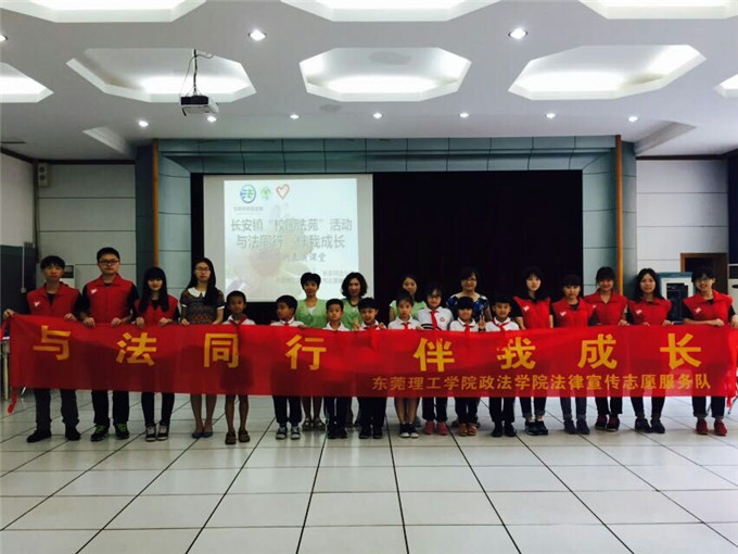 政法学院法律宣传与志愿服务队迎来了本学期所剩不多的一次出队活动。本次活动主要是协助长安司法分局到长安镇中心小学举办长安镇校园法苑活动,活动主题是与法同行,伴我成长之法治案例表演课堂。