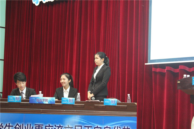 本次辩论的辩题是大学生创业更应该立足于自身优势还是市场需求。政法学院代表队作为正方主张大学生创业更应该立足于自身优势,而文学院代表队作为反方则主张大学生创业更应该立足于市场需求。