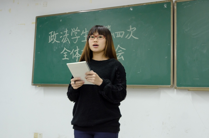 政法学院学生会副主席谭乐发言