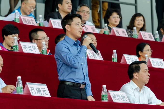 动会组委会主任、党委书记成洪波宣布运动会开幕