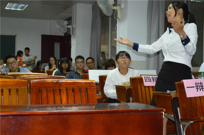比赛分为四阶段,本次进行的是第一阶段的初赛,第一阶段由政法学院2014级莞城10个班的同学共同参与,两两辩论,决出进入下一轮的队伍。比赛评委由政法学院辩论队队员担任。