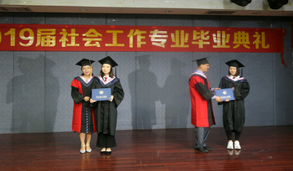 在莞城校区小剧场举行2019届社会工作专业毕业典礼。党总支书记杜应发、党总支副书记丘永辉,副院长朱晓红,社会工作系主任成伟,学工办主任钟丽华,张燕婷老师、邹朝春老师、张雪老师、黄俊辉老师、张子庄老师,,辅导员刘海波、邱可荣、邹欢出席了本次典礼。