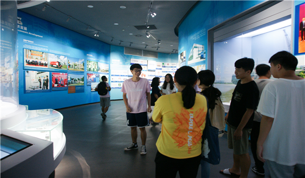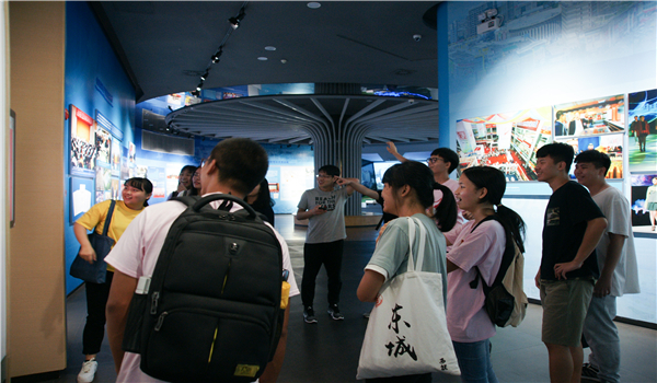 在参观过程中,同学们不时地赞叹东莞发展历程之快速,并拿出手机记录不同时期的东莞。参观完展览馆后,团支书开始组织同学进行团体游戏,同学们积极参与游戏,在游戏中提升同学之间的感情,增强班级的凝聚力。