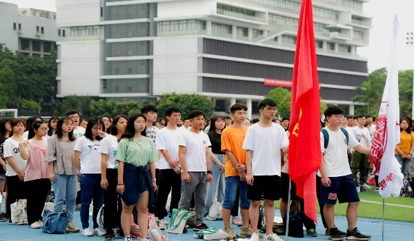 分别在松山湖校区和莞城校区举行了升国旗仪式。在莞城校区运动场,在全体师生的注目下,国旗护卫队护送鲜艳的五星红旗缓缓地走向升旗台。随着雄壮的国歌声响起,五星红旗迎着初升的太阳冉冉升起。