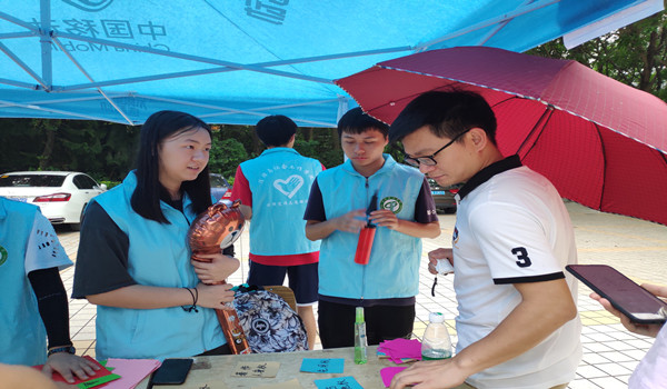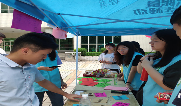团总支法律宣传志愿服务队为了提高大学生知识产权意识,普及知识产权知识,26日中午在一饭门口进行摆摊活动,以生动形象、丰富有趣的游戏与同学们亲密互动,尽管天公不作美在摆摊期间下起了大雨,但法宣队的普法热情依然没有减少,同学们的求知欲望也丝毫没有受到影响,更有同学们顶着大雨前来支持我们的摆摊活动。敬爱的邱老师和邹老师也亲自来到摆摊现场来体验普法和游戏的魅力。最后此次摆摊活动也顺利完成。相信通过着次摆摊活动能使让同学们了解到更多关于知识产权的知识,希望同学们在以后的人生道路中都能够做到“知与智行”。