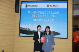 公共管理系2017级行政管理专业学生梁富欣同学参会并在本科生分论坛上发言,喜获本科生组二等奖。该论坛是国内社会工作领域专业水平最高的学生学术论坛。本次论坛有120多所高校的196名社会工作专业本科生、硕士研究生和博士研究生参会。