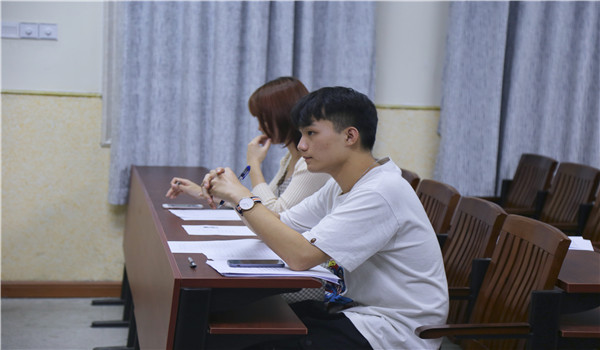 第二届主持人大赛初赛在莞城校区5307教室举行。本次主持人大赛初赛由法社学院的20位同学以及法社团学文娱部成员担任评委。比赛的第一个环节,每位参赛选手上台在黑板上写下自己的名字并进行30秒的自我介绍。参赛选手带着紧张又激动的心情介绍自己。随后是朗诵环节,各位参赛选手自备题目,给大家带来了五分钟声情并茂的朗诵。选手们以生动的语调、饱满的精神,积极向上的朗诵内容,感染着在座的每位评委。