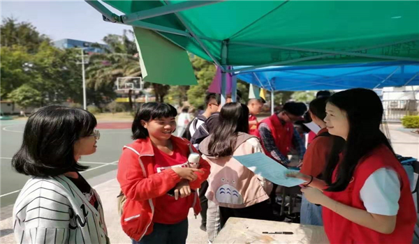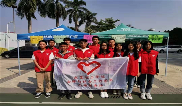 团委学生会志愿服务站在莞城校区图书馆前篮球场旁举办“国际大学生节”摆摊宣传活动。
