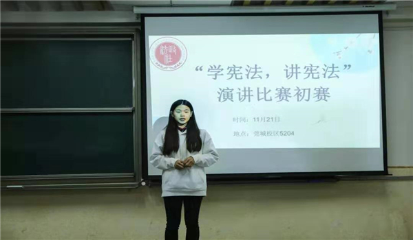 在莞城校区5204课室举行了“学宪法,讲宪法”演讲比赛初赛,本次比赛旨在通过宪法进校园演讲比赛的开展,用新颖的形式宣传宪法,着力推动青少年养成学法、尊法、守法、用法的行为习惯,使宪法精神深入人心,培养学生的创新意识、实践能力和社会责任感,进一步增强我校师生员工的社会主义法制理念。