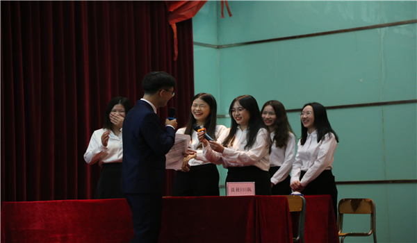 抢答环节后结束后,观众互动环节随着轻松的音乐开始了,击鼓传花的方式让观众兴趣盎然,大家都积极踊跃地参与互动。观众互动结束,到了最后的“一站到底”环节。队员上台答题,参赛者集中精力认真审题,全场观众屏息凝神为他们营造出安静的答题氛围。经过激烈的角逐和评委的严谨审评,法社学院的996队、粤台学院的游泳队和中法联合学院的八天警告队脱颖而出进入校级决赛。