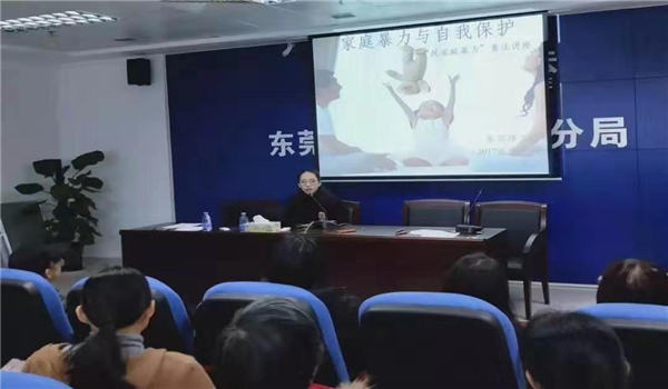 来到东莞司法局东城分局进行“家庭暴力与自我保护”普法宣传活动。