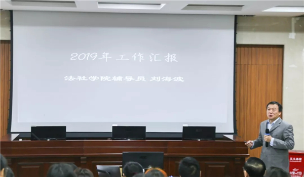 2019年度辅导员考核工作述职大会在莞城校区模拟法庭举行。本次出席的辅导员考核工作小组的成员有:校党委学生工作部部长黄金和,经济与管理学院党委副书记黄湘,粤台产业科技学院直属党支部副书记王玉,法社学院党委副书记丘永辉,学工部思政科刘红艳老师;出席本次辅导员考核的学院领导有院长郑玉敏,党委书记杜应发,副院长朱晓红、沈亚萍;班主任代表以及学生代表。