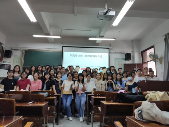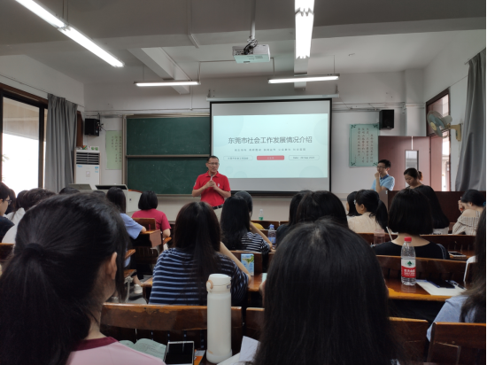 邀请了东莞市社会工作协会会长王志伟为17级社会工作专业的学生开展主题为“东莞市社会工作发展情况介绍”的就业分享课。学院党委书记杜应发,教学副院长朱晓红、学工办主任钟丽华,社工系副系主任张雪、社工系教师党曦、教学秘书张子庄出席了本次分享课。