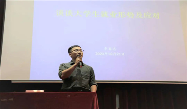于10月21日19:00在莞城校区学术报告厅举办主题为“大学生就业形势及应对”的新生入学系列讲座。本次讲座由我校就业办李春志老师担任主讲嘉宾,辅导员邱可荣与2020级新生参加此次讲座。