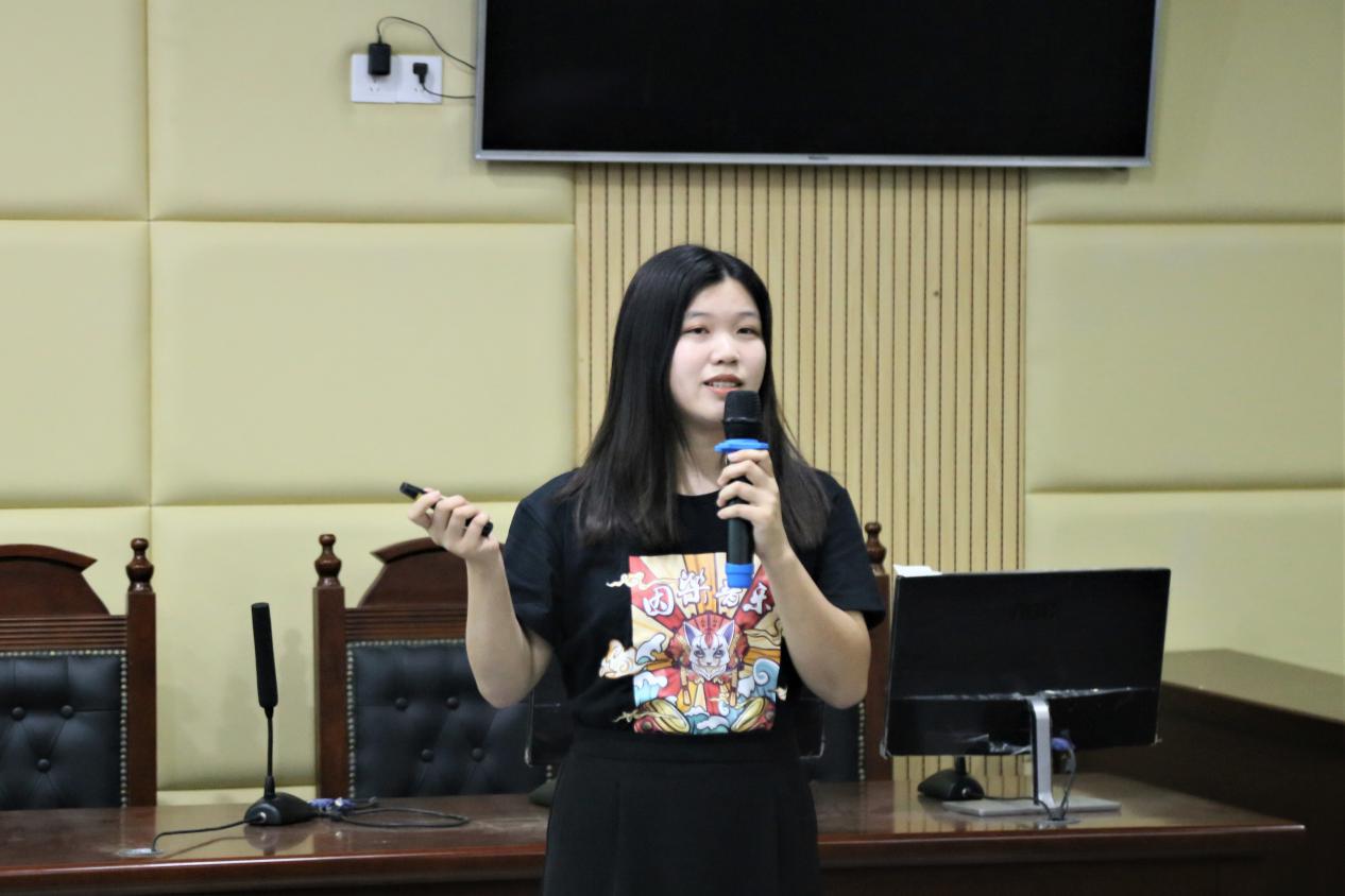 此次动员会特邀请了来自2018级行政管理专业的挑战杯优秀代表吴少芬向同学们详细介绍了她自身的参赛过程。吴少芬同学在今年凭借“因楽音乐馆-中国新型音乐空间领跑者”项目获得“赢在东莞”科技创新创业大赛大学生组一等奖,实力摘下东莞市“三八红旗手”荣誉称号,刚刚获得2019-2020年度“杨振宁奖学金”。她以自己参加挑战杯的经历向同学们详细分享了她自身的参赛过程,包括前期的组队和后期的比赛准备。她强调:世界上没有那么多逆袭,只有日复一日的付出。