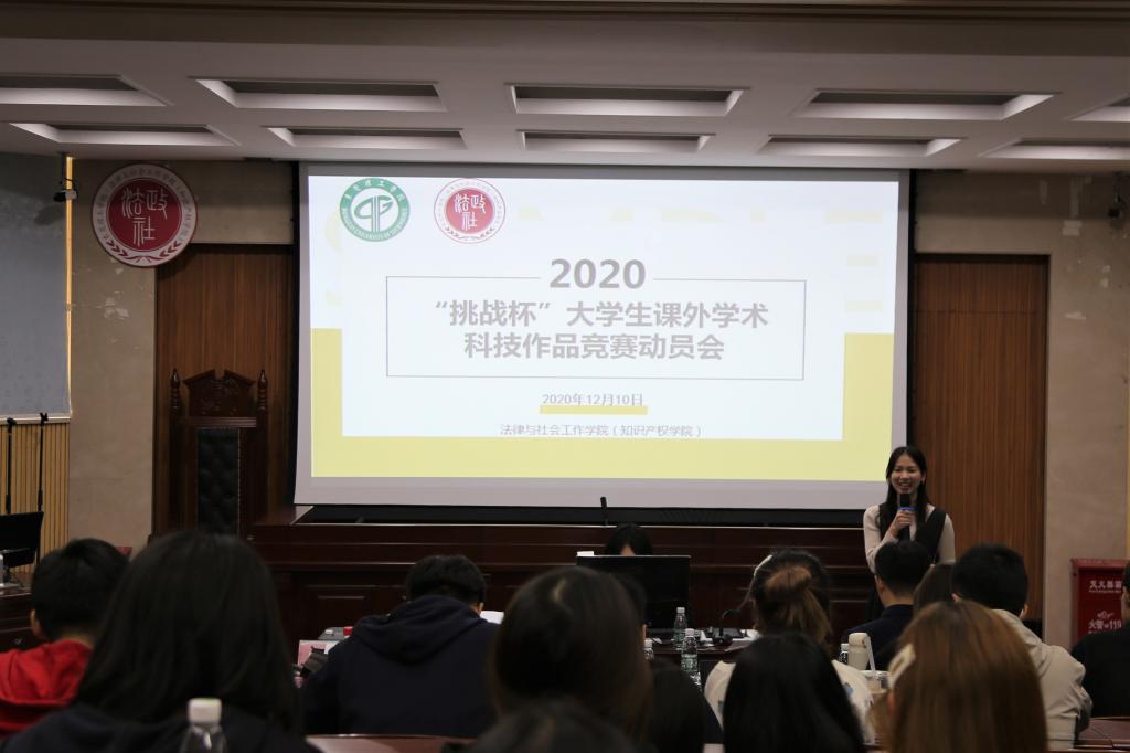 于莞城校区模拟法庭成功举办“挑战杯”大学生课外学术科技作品竞赛动员培训会。出席大会的学院领导和老师有学院副院长朱晓红、法律系副主任吉海荣、社工系副主任张雪、知识产权系杨靖老师以及负责“挑战杯”大赛的辅导员邱可荣老师,学院各年级代表共100多人参加了此次动员会。