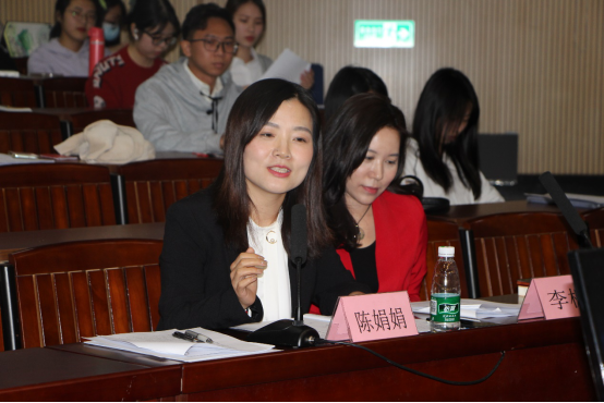 决赛过程中,对阵双方通过陈述、辩论等环节进行法律的博弈。选手们对案件表达了自己的法律见解,为所占立场据理力争。随着庭审的展开,原告与被告之间的争议得以聚焦,同学们的陈词变得更具有逻辑性和针对性,比赛气氛紧张热烈。评审们对原被告双方进行了提问,结合自己的办案经验对学生的庭审中存在的问题给与了细致指导。校外评委赞扬了肉蒲团