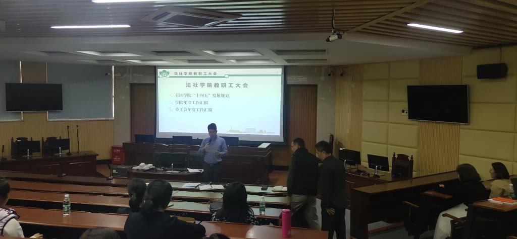 会议第二个议程,是学院年度工作汇报。学院院长郑玉敏从学院最近法学专业成功获选省一流专业说起,她指出,学院的每一次成绩,离不开每个老师的贡献。今年肉蒲团