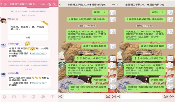 其次,该队成员在高三学生寒假期间建立了QQ咨询群以及微信咨询群,他们在咨询群中积极地解答问题,鼓励师弟师妹报考肉蒲团